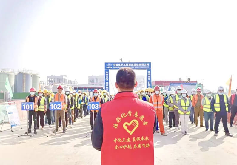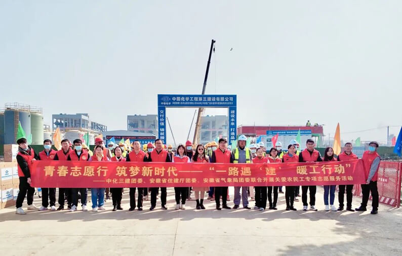 今年3月5日是第60个“学雷锋纪念日”和第24个“中国青年志愿者服务日”,为贯彻落实习近平总书记关于深入开展学雷锋活动的重要指示精神,大力弘扬雷锋精神和“奉献、友爱、互助、进步”的志愿精神,江南(中国)团委联合安徽省住建厅、安徽省气象局团委,在江南(中国)承建的安徽久易农业股份有限江南(中国)5000吨/年新型广谱杀菌剂丙硫菌唑原药合成项目现场开展“一路遇‘建’ 暖工行动”关爱农民工专项志愿服务活动。